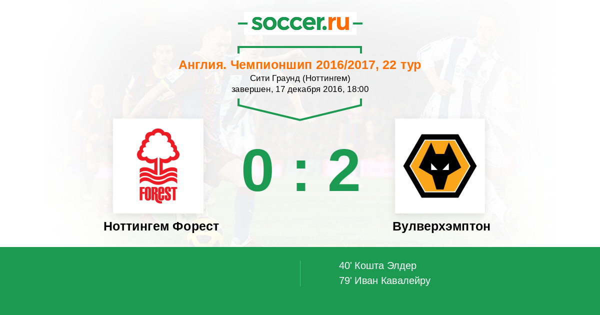 Протокол матча Ноттингем Форест против Вулверхэмптон