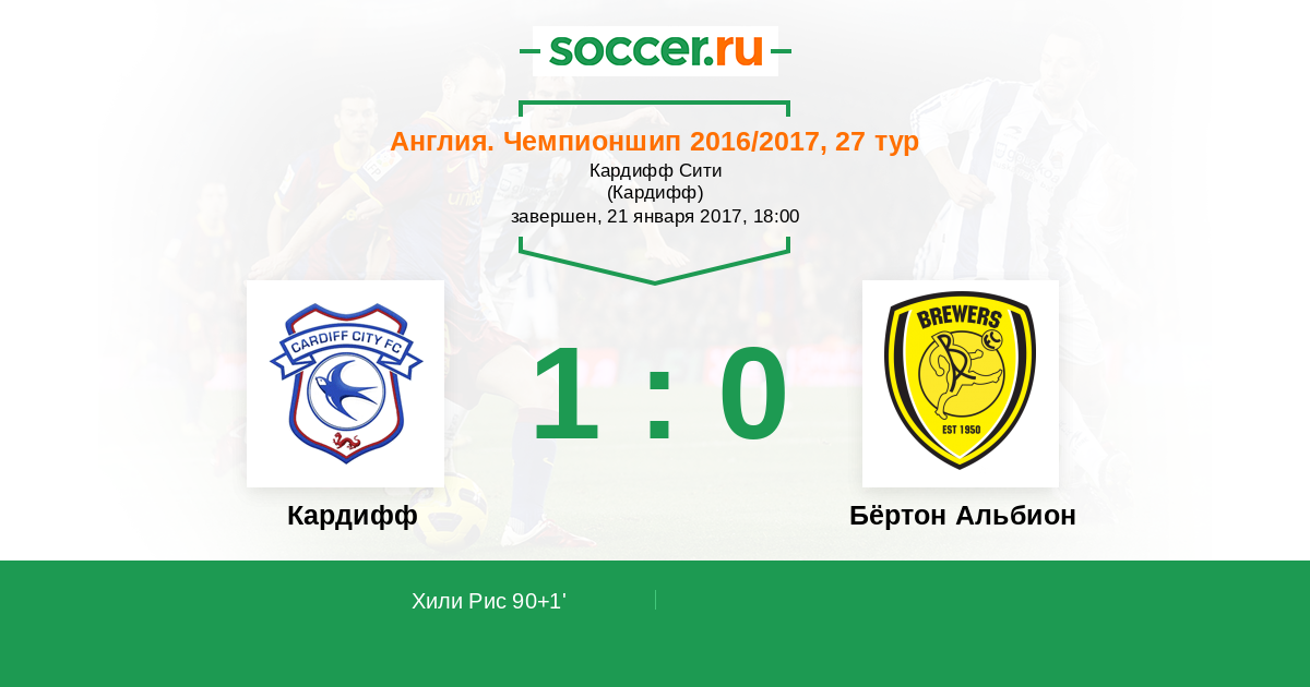 Протокол матча Кардифф против Бёртон Альбион