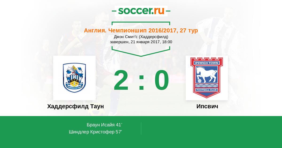 Протокол матча Хаддерсфилд Таун против Ипсвич