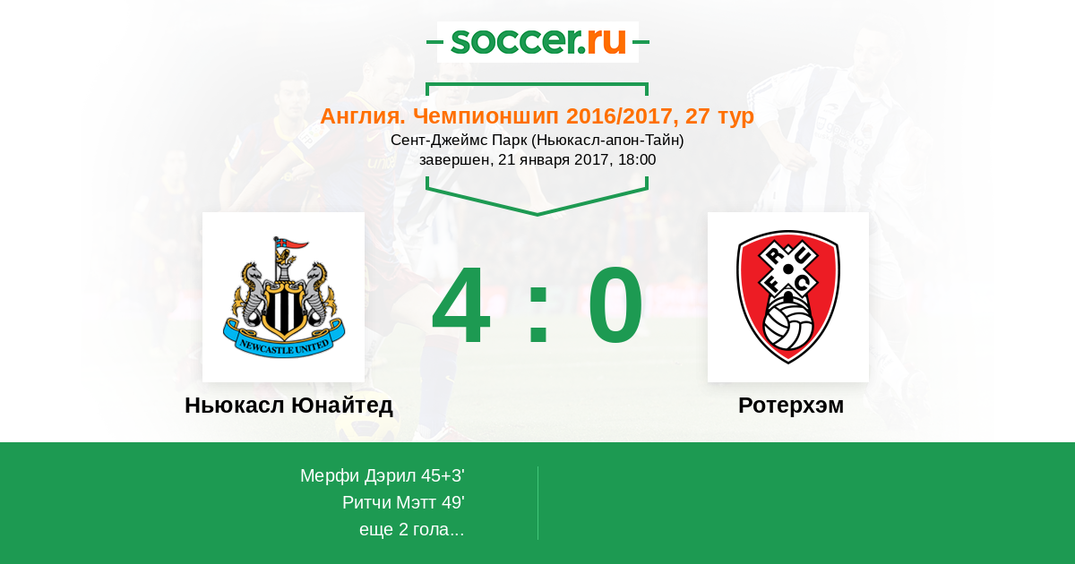 Протокол матча Ньюкасл Юнайтед против Ротерхэм