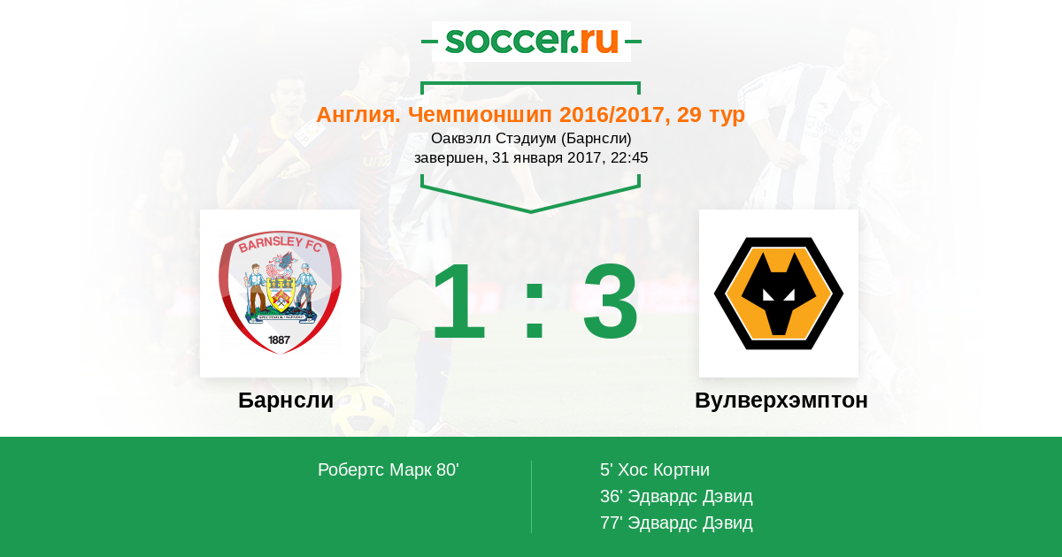 5' (0:1) Хос Кортни (30) (Эдвардс Дэвид (4))