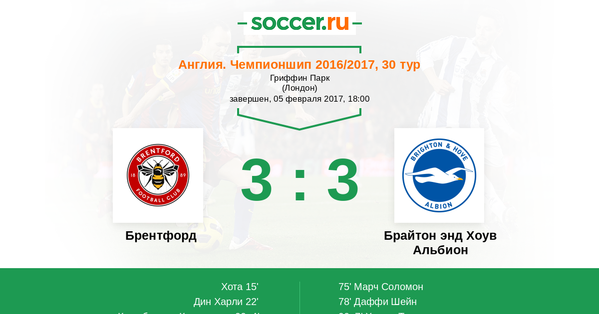Протокол матча Брентфорд против Брайтон энд Хоув Альбион