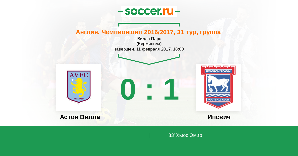 Протокол матча Астон Вилла против Ипсвич