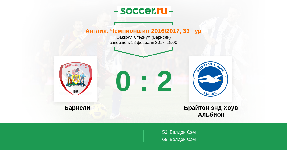 Протокол матча Барнсли против Брайтон энд Хоув Альбион