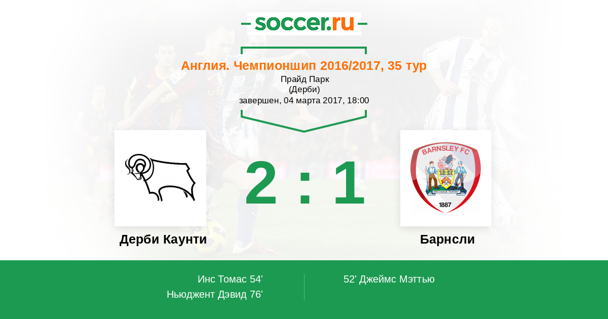 Протокол матча Дерби Каунти против Барнсли