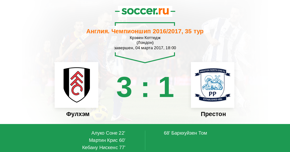 77' (3:1) Кебану Нискенс (7) (Алуко Соне (24))