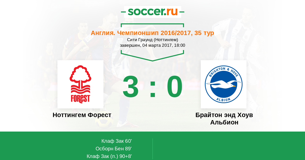 Протокол матча Ноттингем Форест против Брайтон энд Хоув Альбион