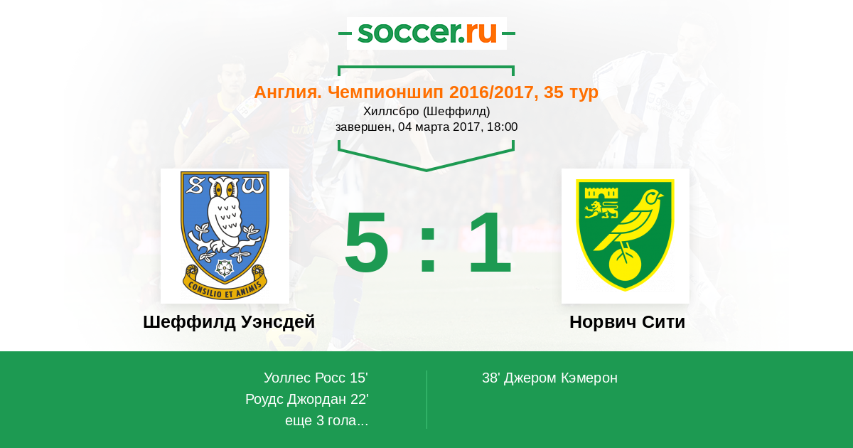 Протокол матча Шеффилд Уэнсдей против Норвич Сити
