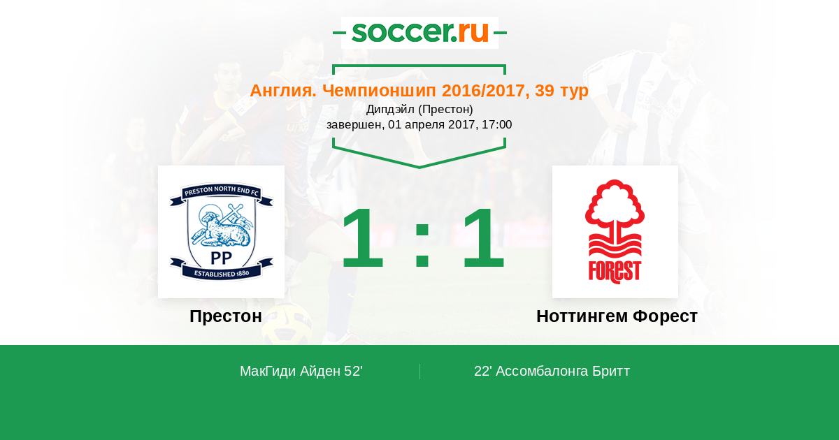 Протокол матча Престон против Ноттингем Форест