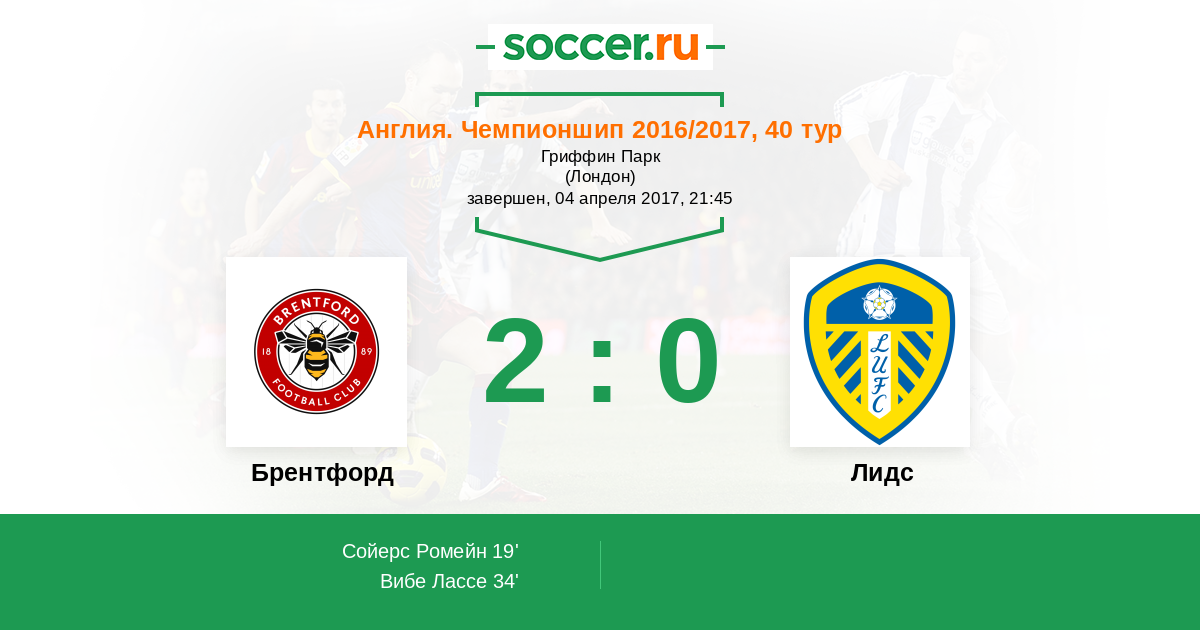 Протокол матча Брентфорд против Лидс