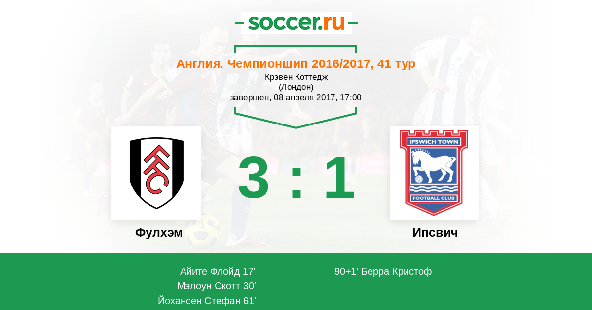 Протокол матча Фулхэм против Ипсвич