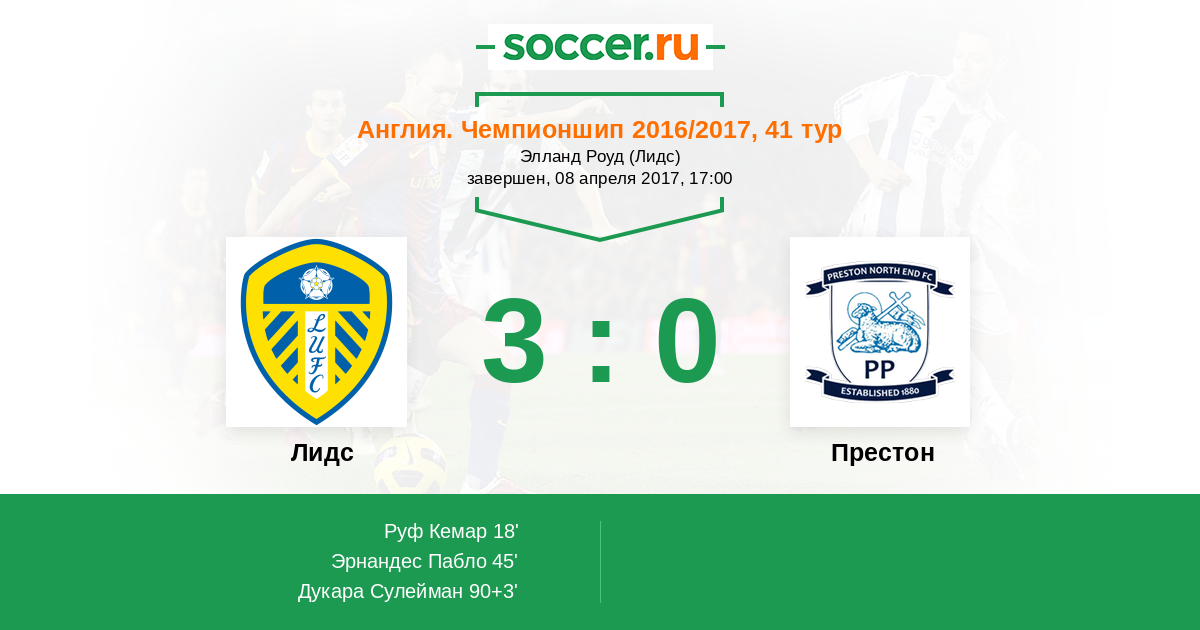 18' (1:0) Руф Кемар (7) (Вуд Крис (9))