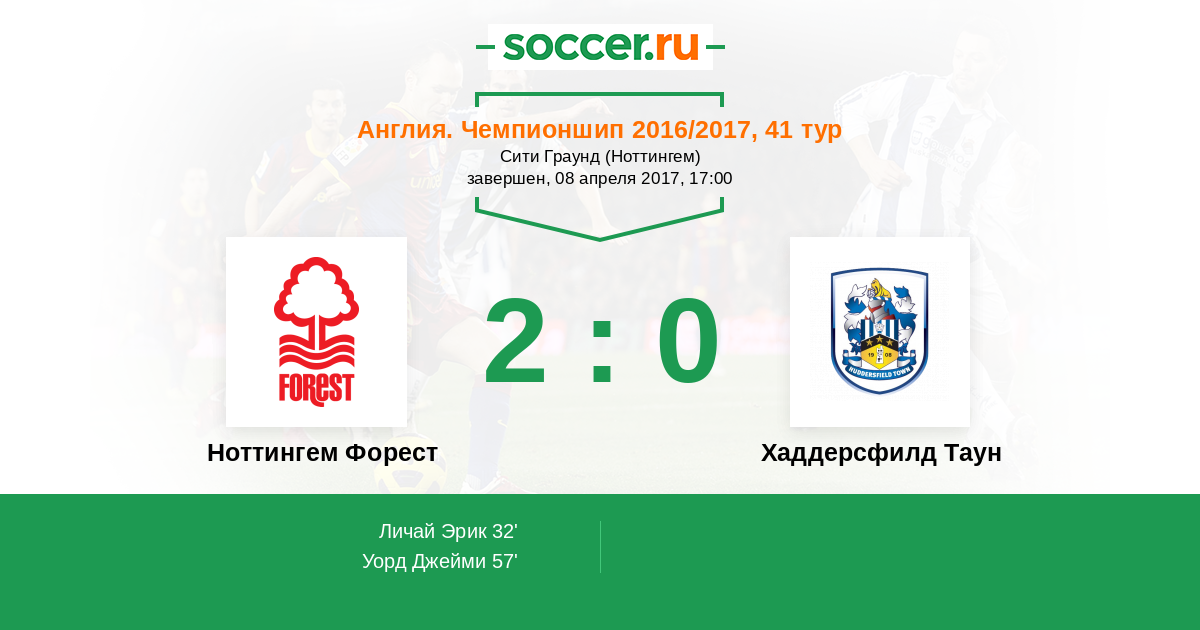 Протокол матча Ноттингем Форест против Хаддерсфилд Таун