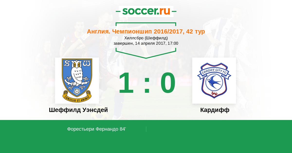 Протокол матча Шеффилд Уэнсдей против Кардифф