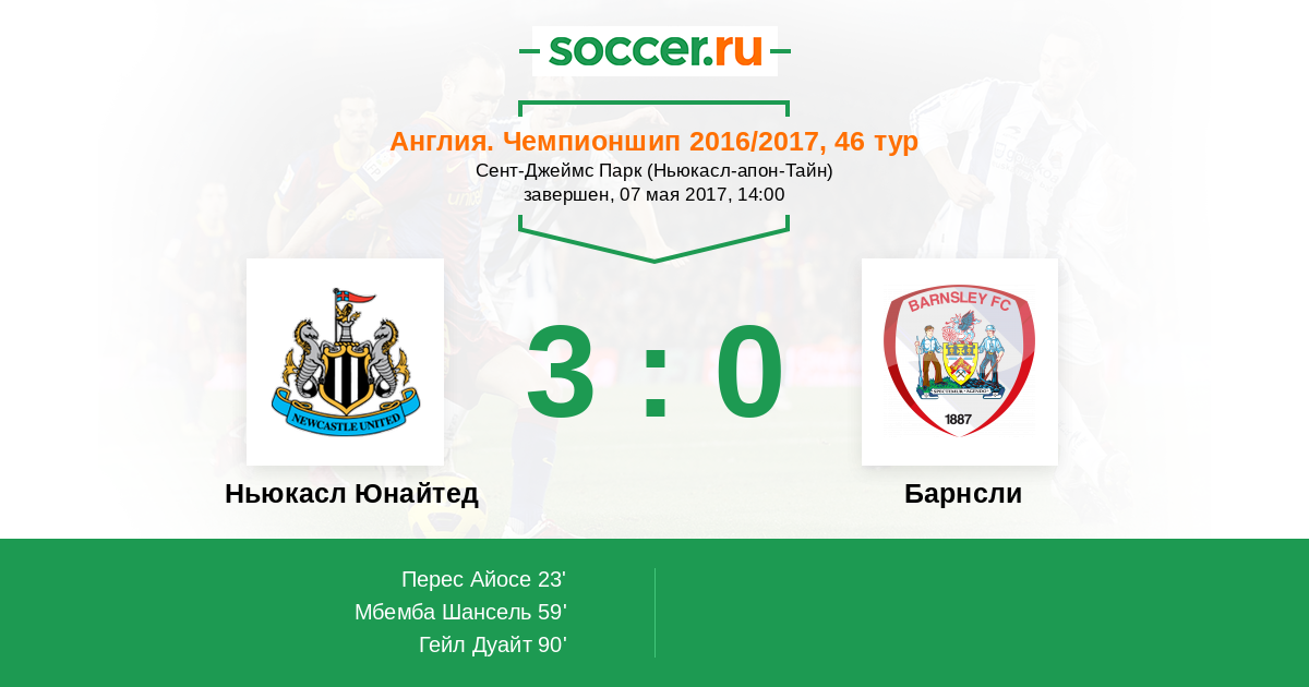 Протокол матча Ньюкасл Юнайтед против Барнсли