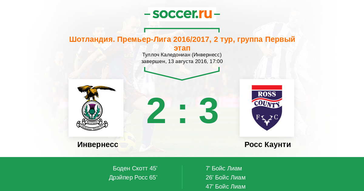 Протокол матча Инвернесс против Росс Каунти