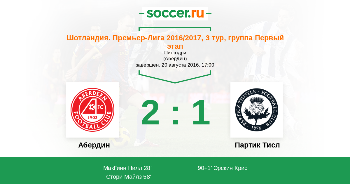 Протокол матча Абердин против Партик Тисл