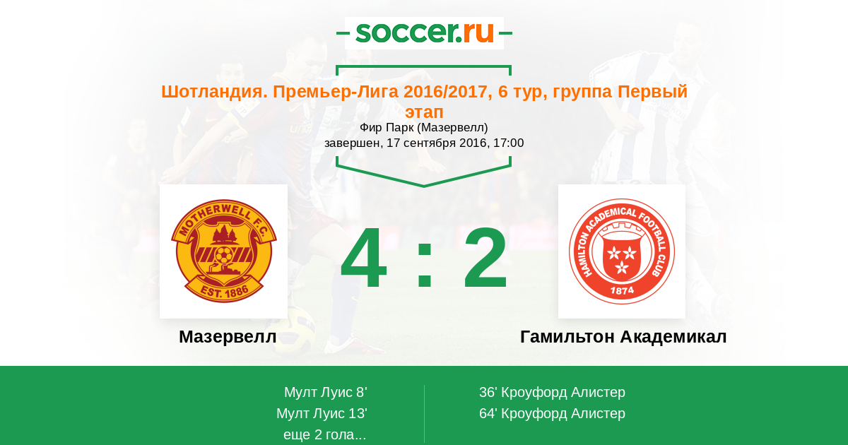 Протокол матча Мазервелл против Гамильтон Академикал