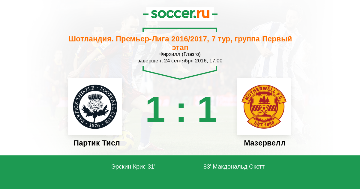 Протокол матча Партик Тисл против Мазервелл