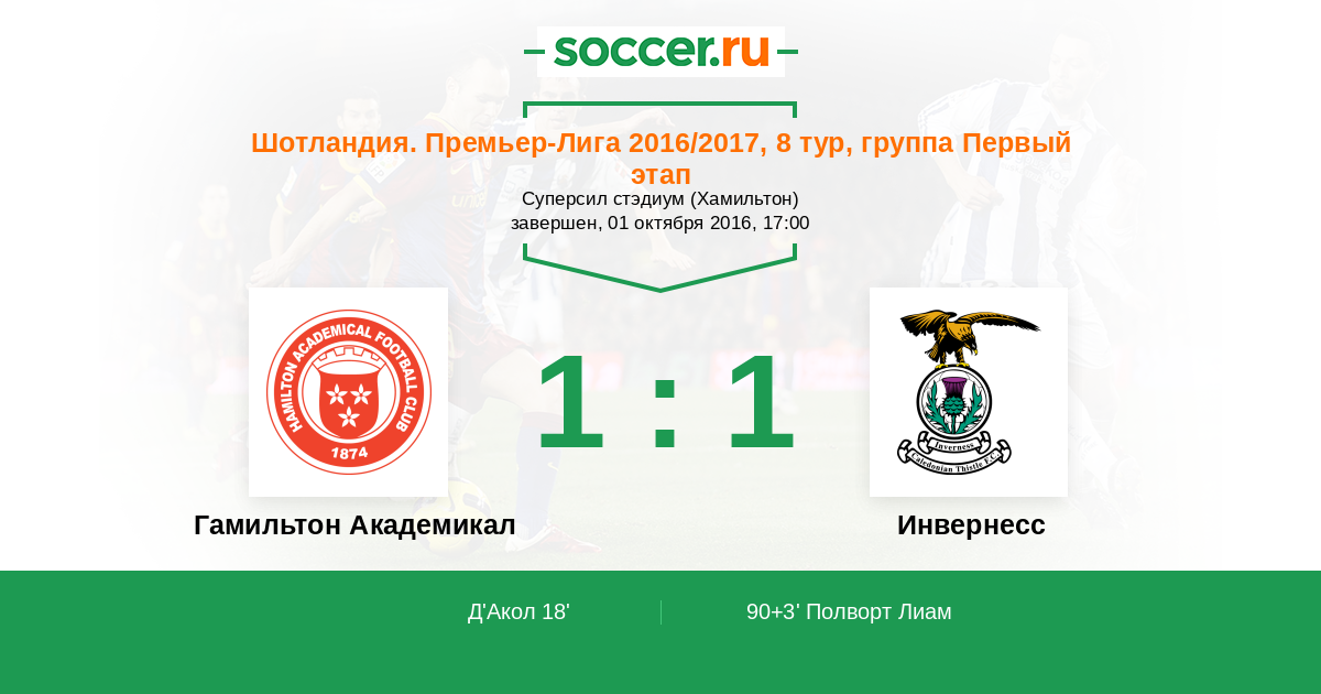 Протокол матча Гамильтон Академикал против Инвернесс