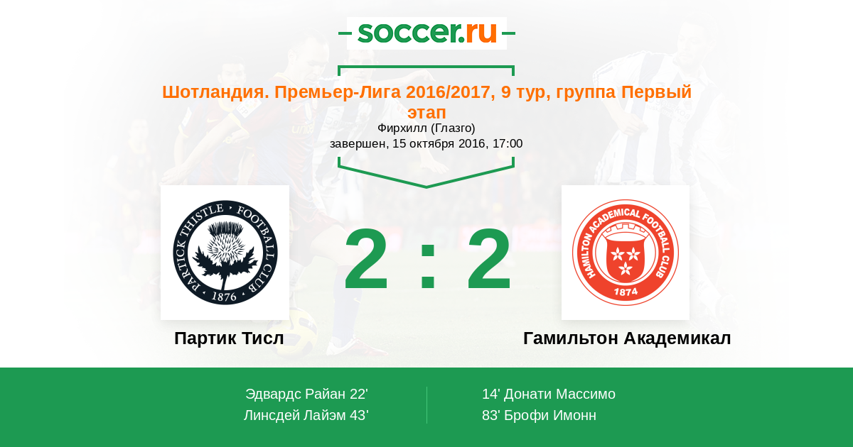Протокол матча Партик Тисл против Гамильтон Академикал