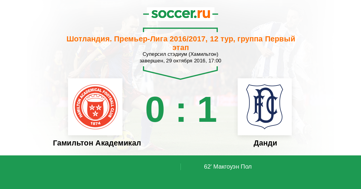 Протокол матча Гамильтон Академикал против Данди