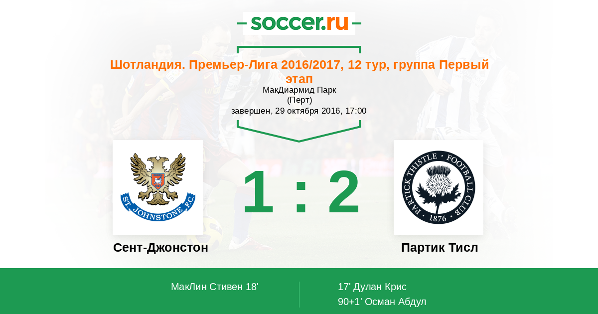 17' (0:1) Дулан Крис (9) (Бут Каллум (3))