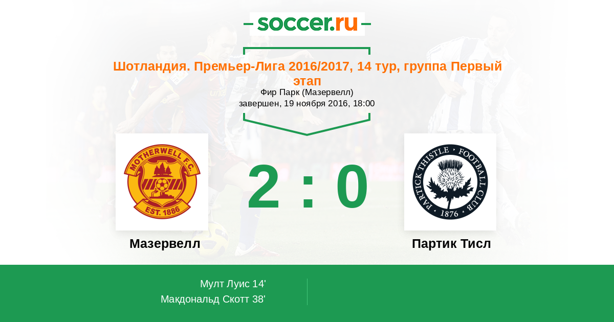 Протокол матча Мазервелл против Партик Тисл