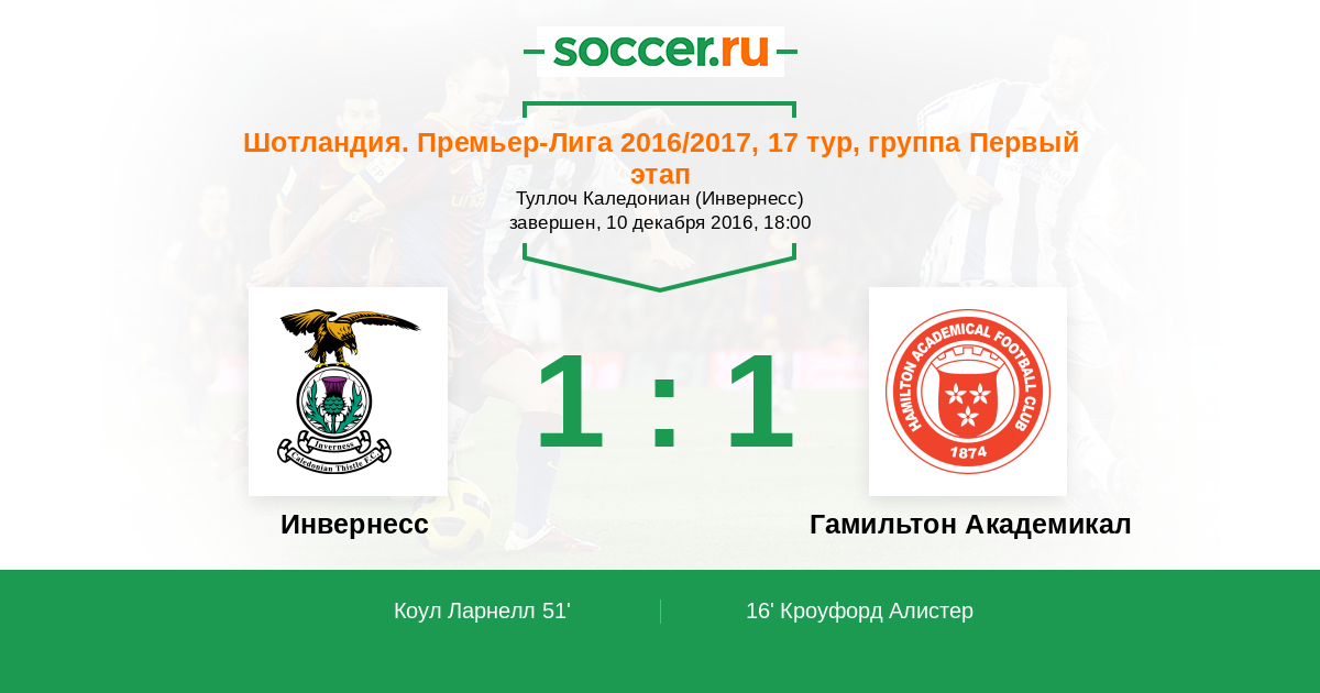 Протокол матча Инвернесс против Гамильтон Академикал
