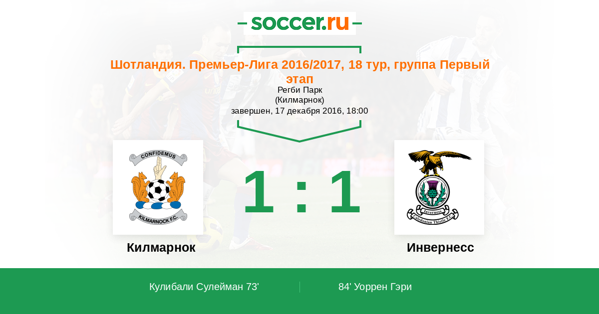Протокол матча Килмарнок против Инвернесс