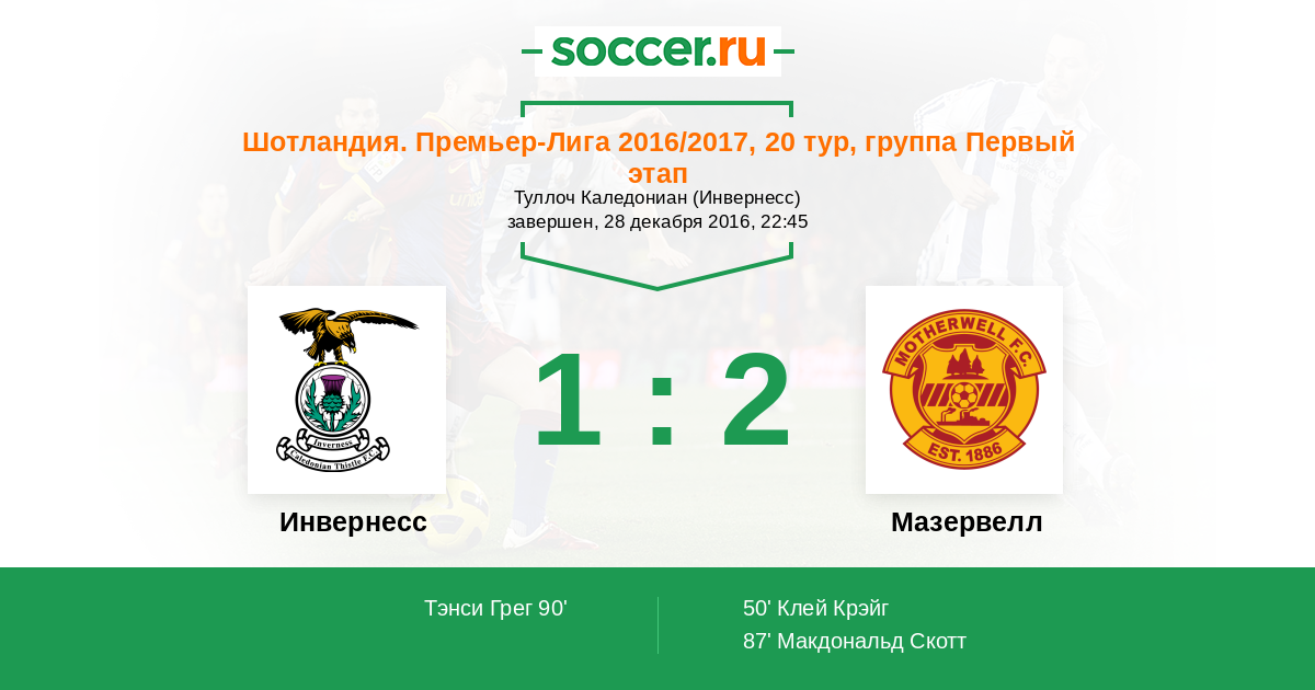 Протокол матча Инвернесс против Мазервелл
