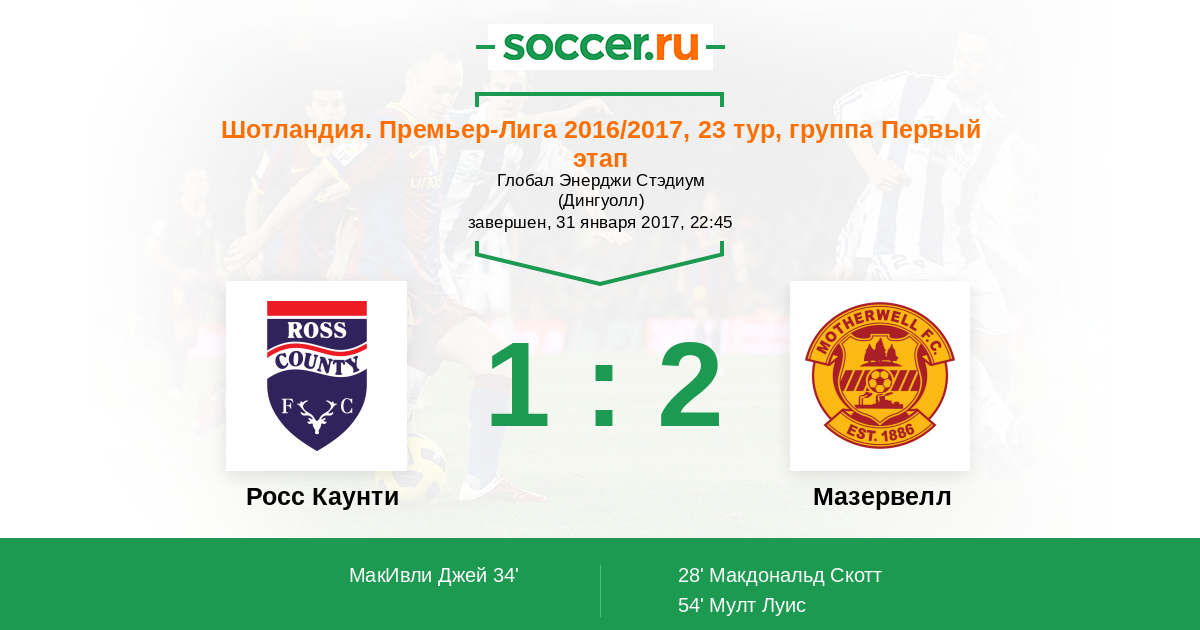 54' (1:2) Мулт Луис (9) (Хаммелл Стивен (3))