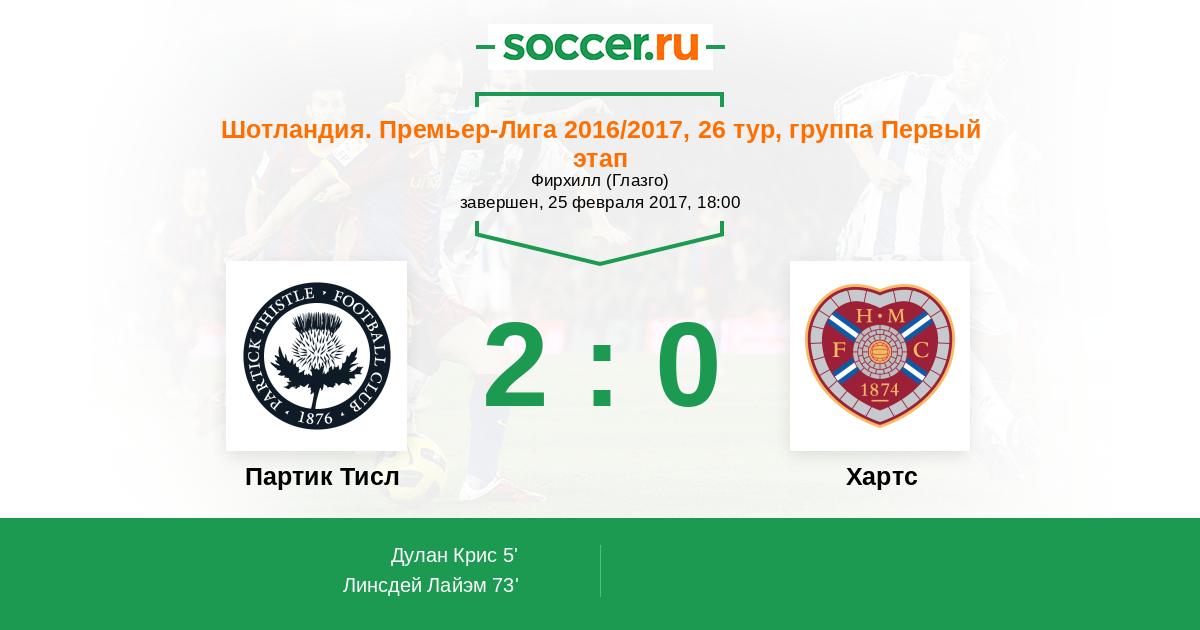 Протокол матча Партик Тисл против Хартс