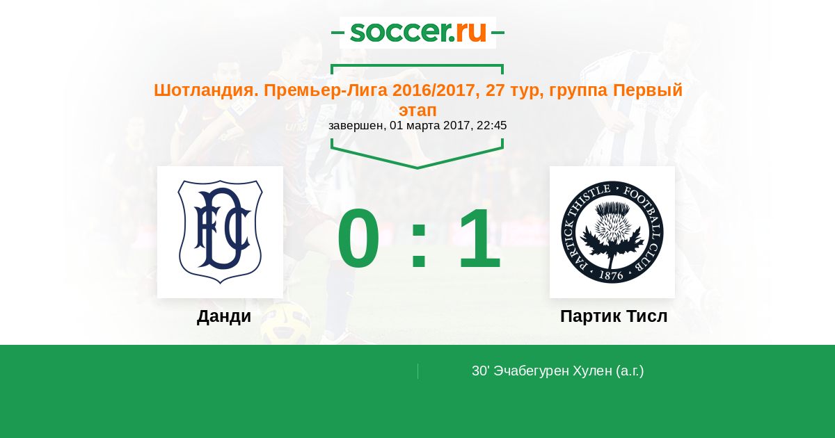 Протокол матча Данди против Партик Тисл