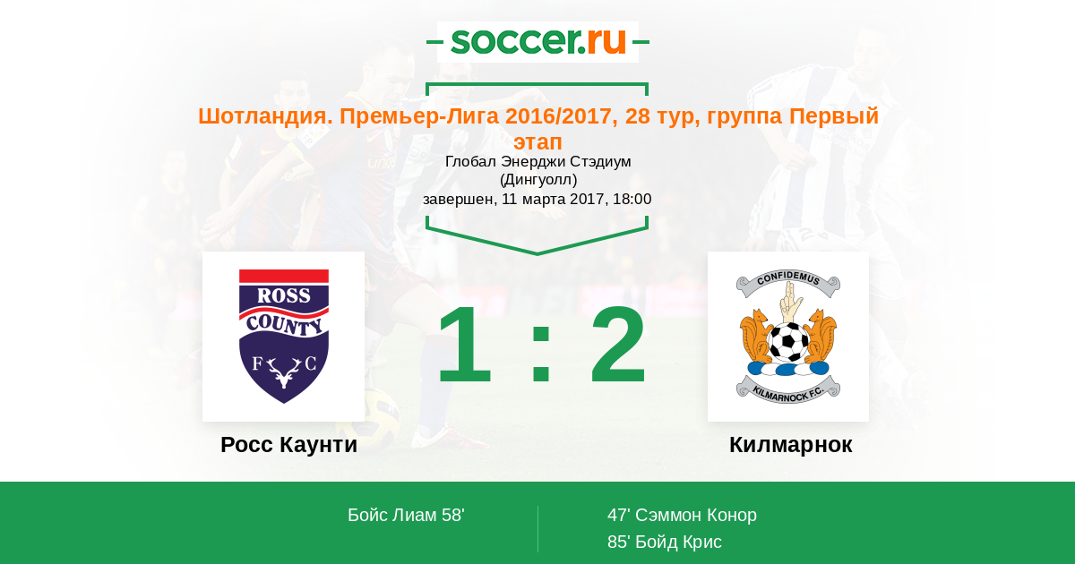 Протокол матча Росс Каунти против Килмарнок