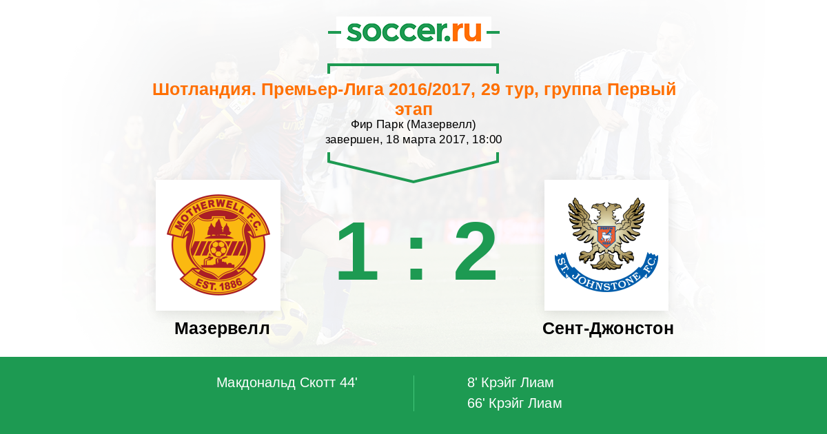 Протокол матча Мазервелл против Сент-Джонстон