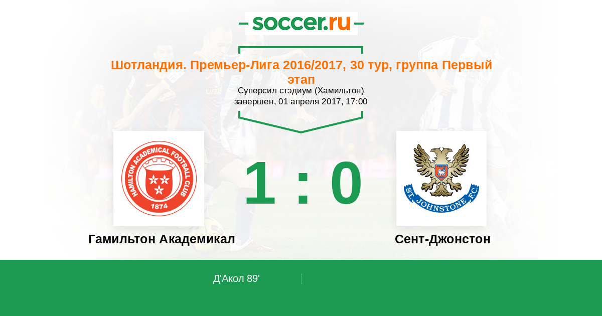 Протокол матча Гамильтон Академикал против Сент-Джонстон