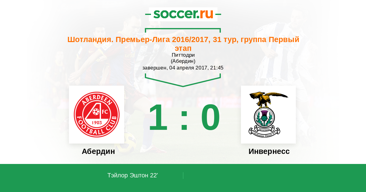 22' (1:0) Тэйлор Эштон (5) (Хэйес Джонни (11))