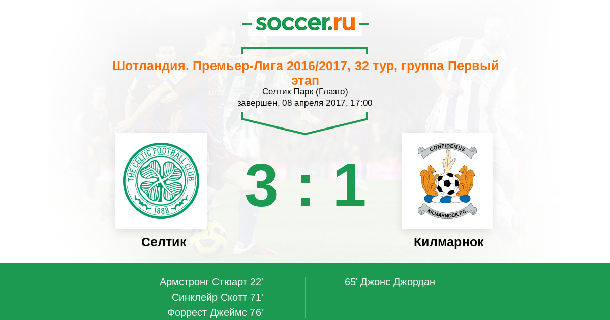 Протокол матча Селтик против Килмарнок