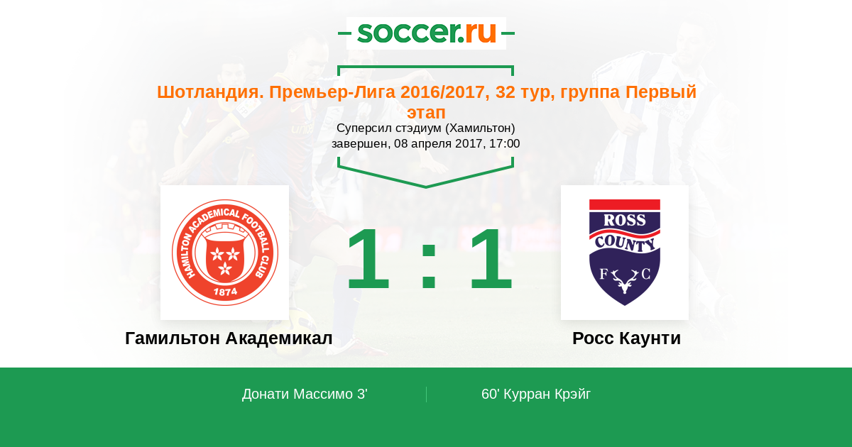 Протокол матча Гамильтон Академикал против Росс Каунти
