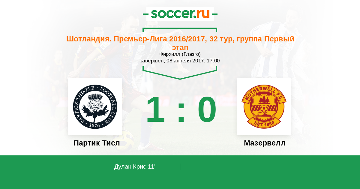 Протокол матча Партик Тисл против Мазервелл