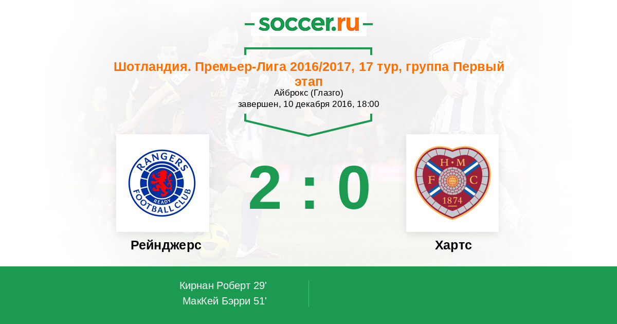 Протокол матча Рейнджерс против Хартс