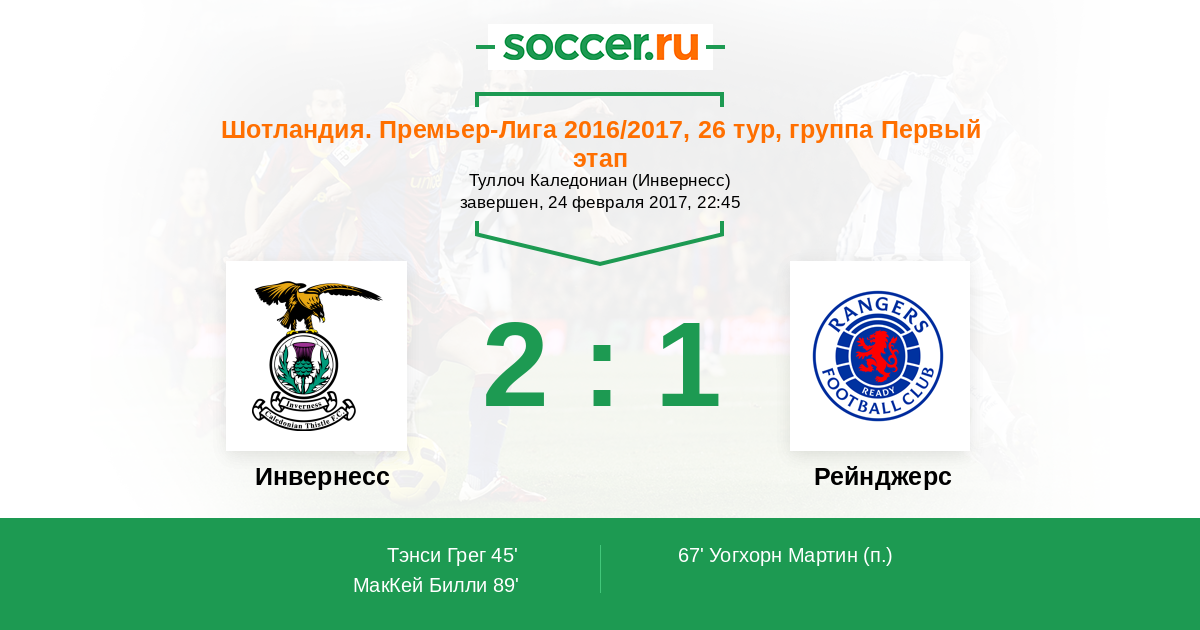 Протокол матча Инвернесс против Рейнджерс