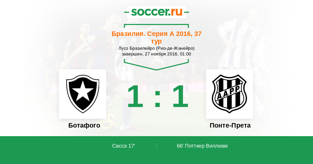 Протокол матча Ботафого против Понте-Прета