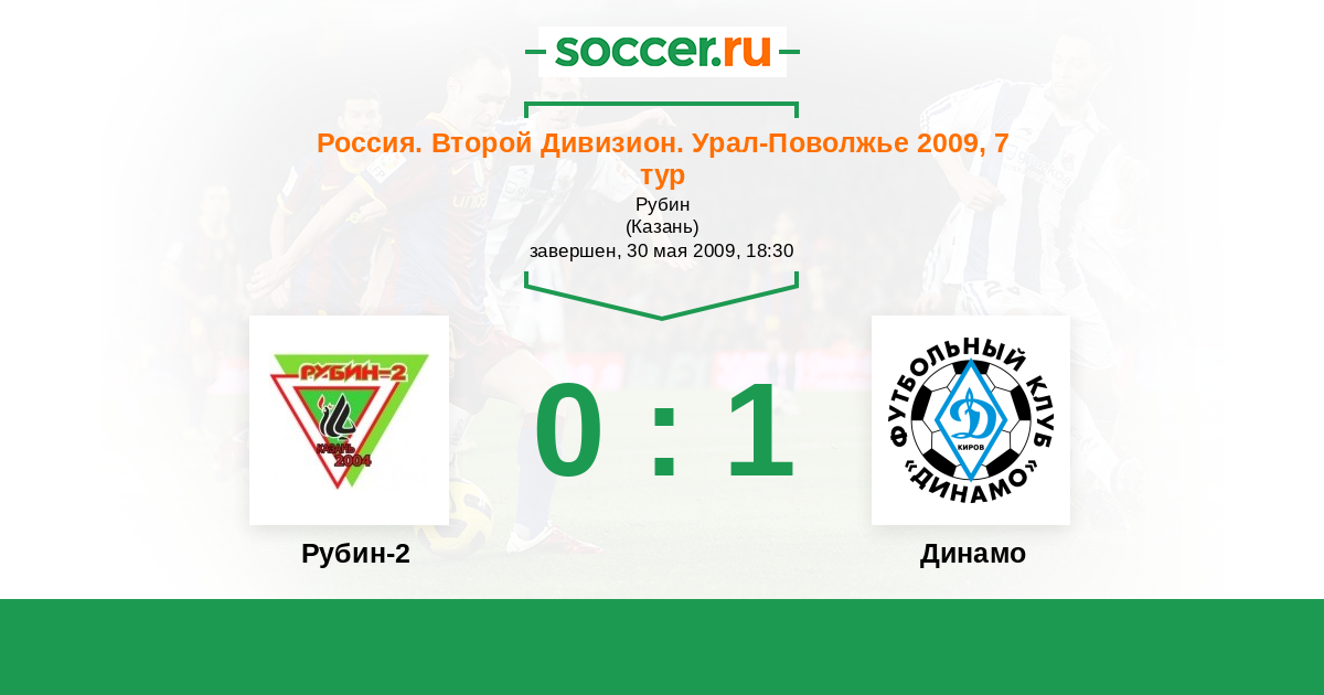 Россия. Кубок 15.05.2010 Рубин-2 Логотип футбольный клуб Рубин-2 (Казань) 0:1 Логотип футбольный клуб Динамо Киров Динамо Киров