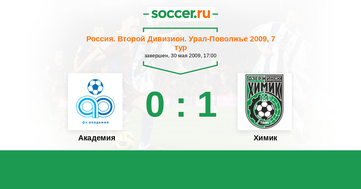 Россия. Вторая лига. Группа 4 07.09.2009 Химик Логотип футбольный клуб Химик (Дзержинск) 2:1 Логотип футбольный клуб Академия (Тольятти) Академия