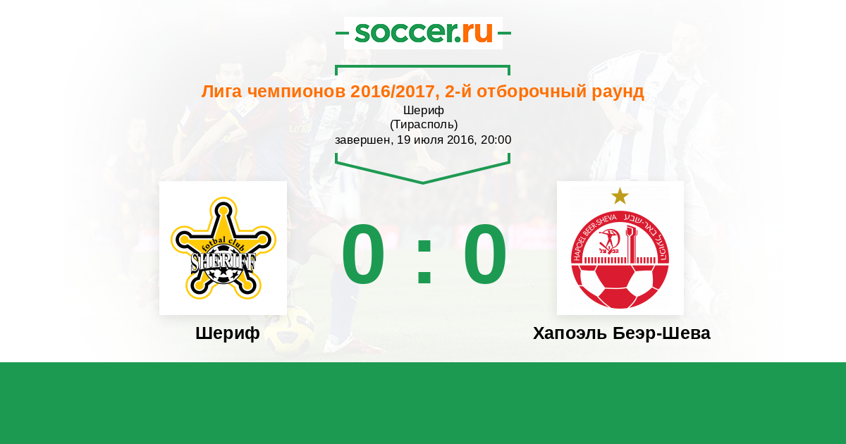 Протокол матча Шериф против Хапоэль Беэр-Шева
