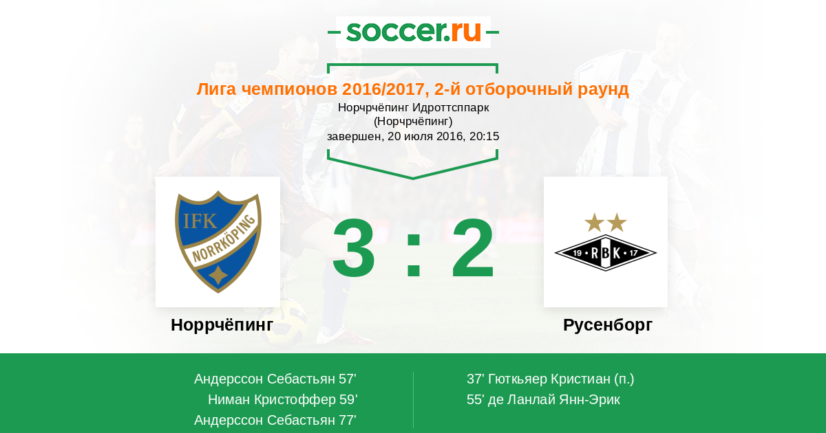 Протокол матча Норрчёпинг против Русенборг