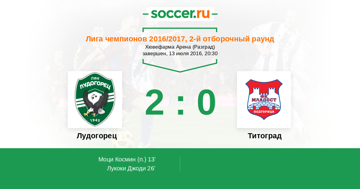 Протокол матча Лудогорец против Титоград