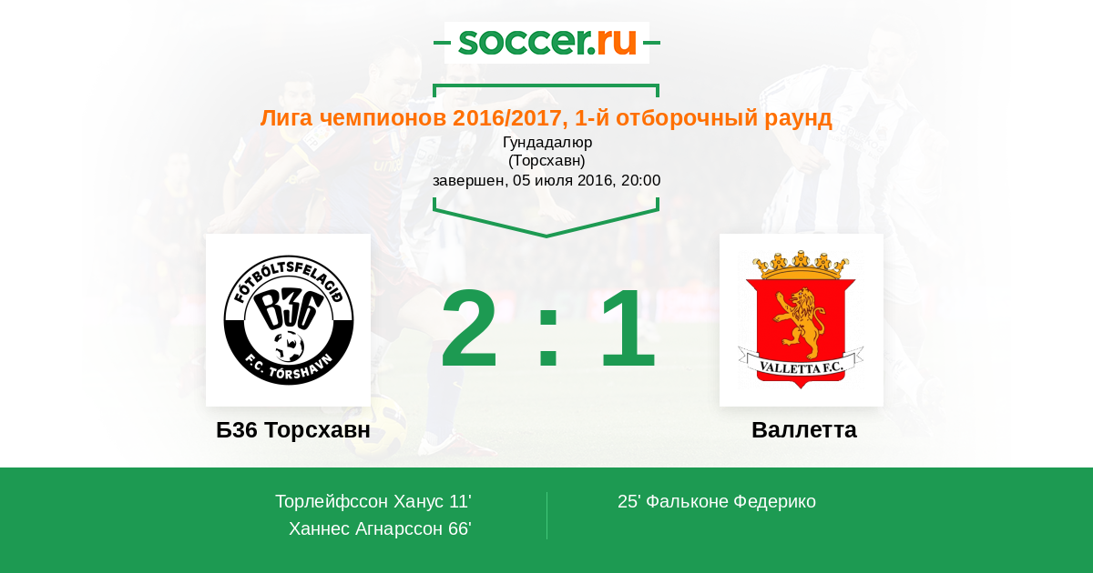 Протокол матча Б36 Торсхавн против Валлетта
